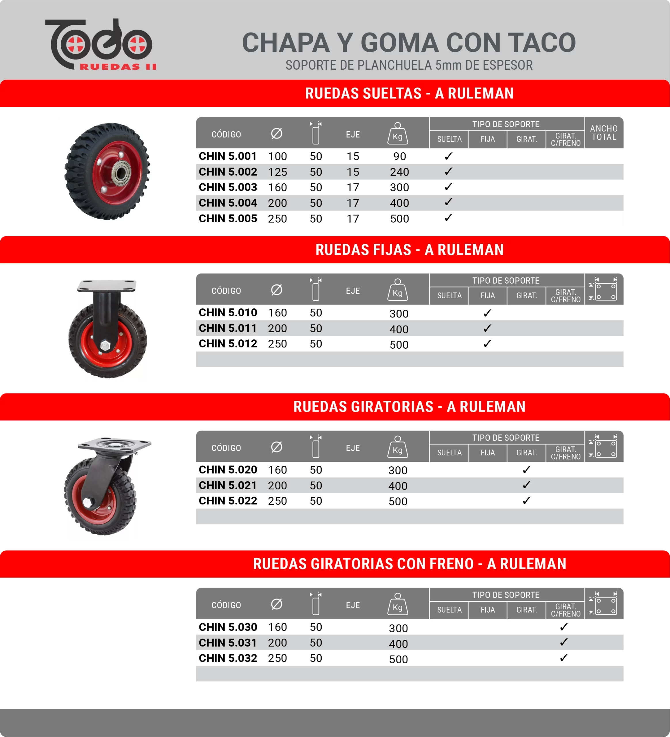 Ruedas de Fundición y Goma – Soporte de Chapa