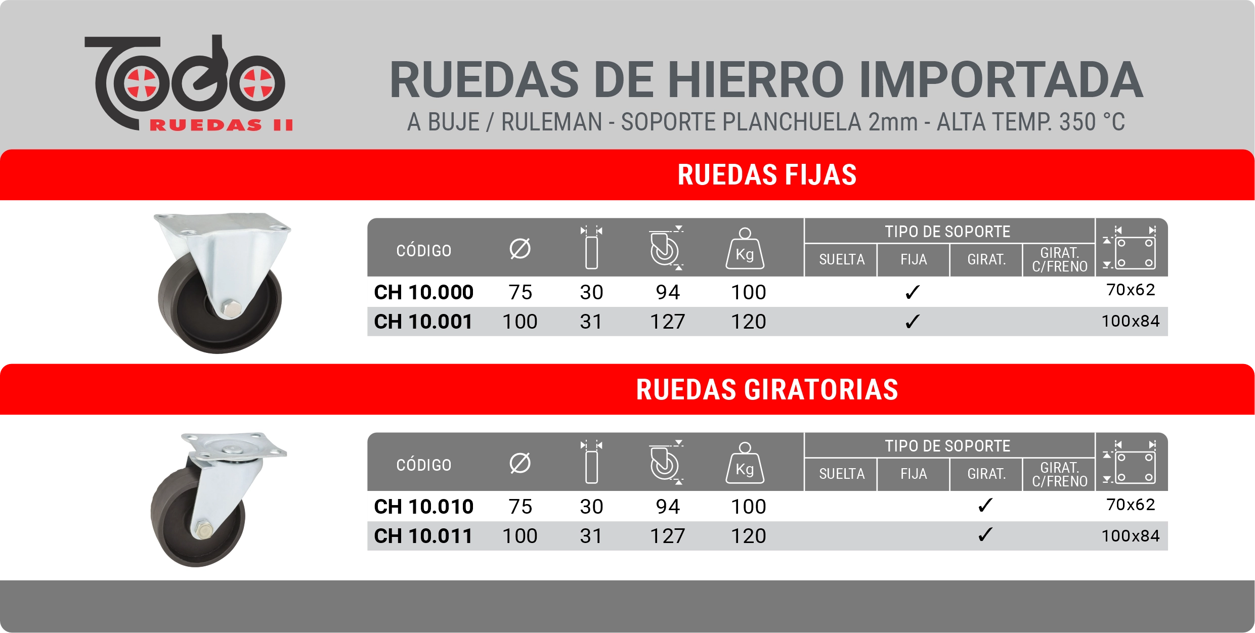 Ruedas de Hierro y Poliuretano A Ruleman – Linea Importada