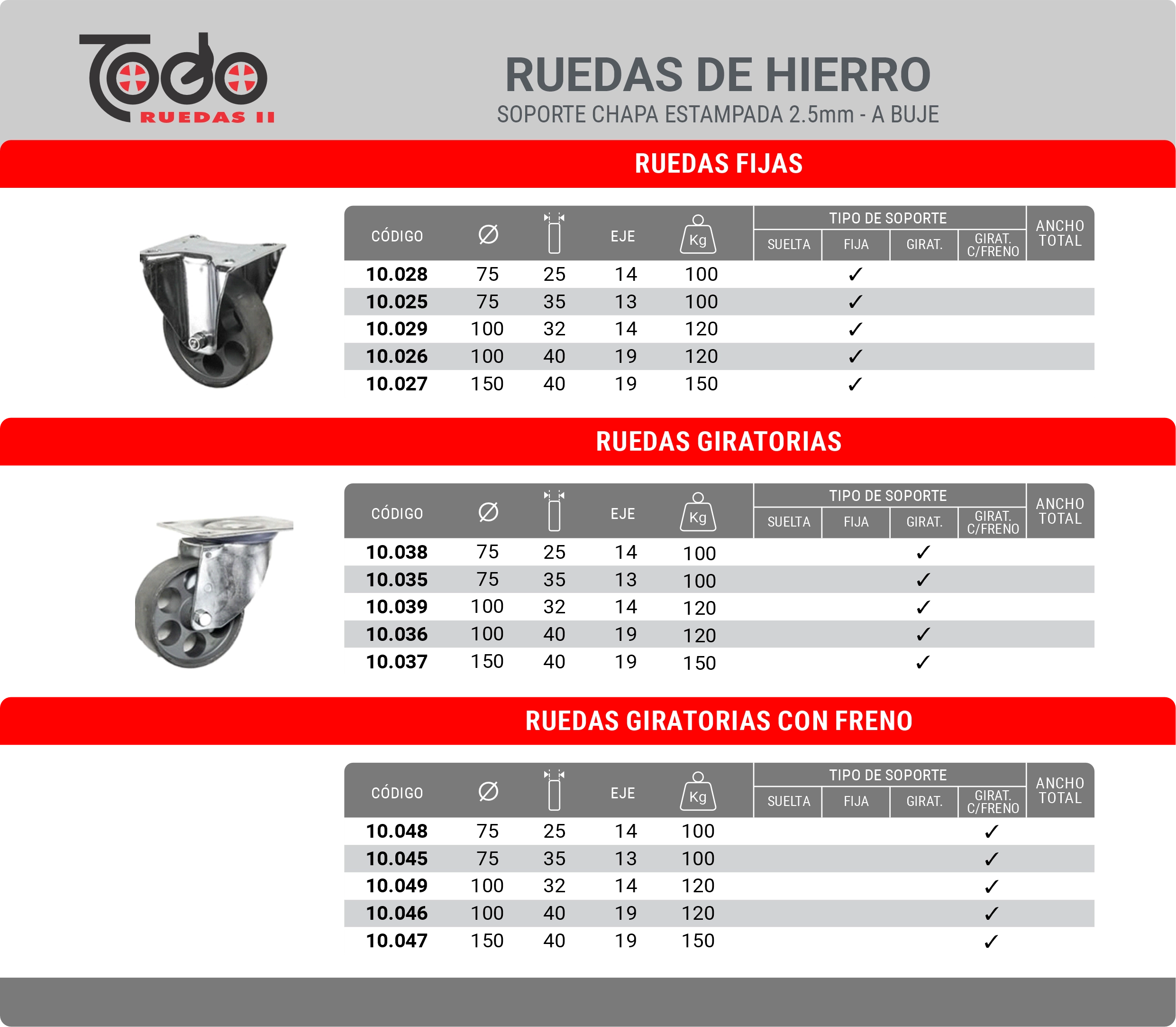 Ruedas Sueltas Hierro y Poliuretano – Buje o Ruleman