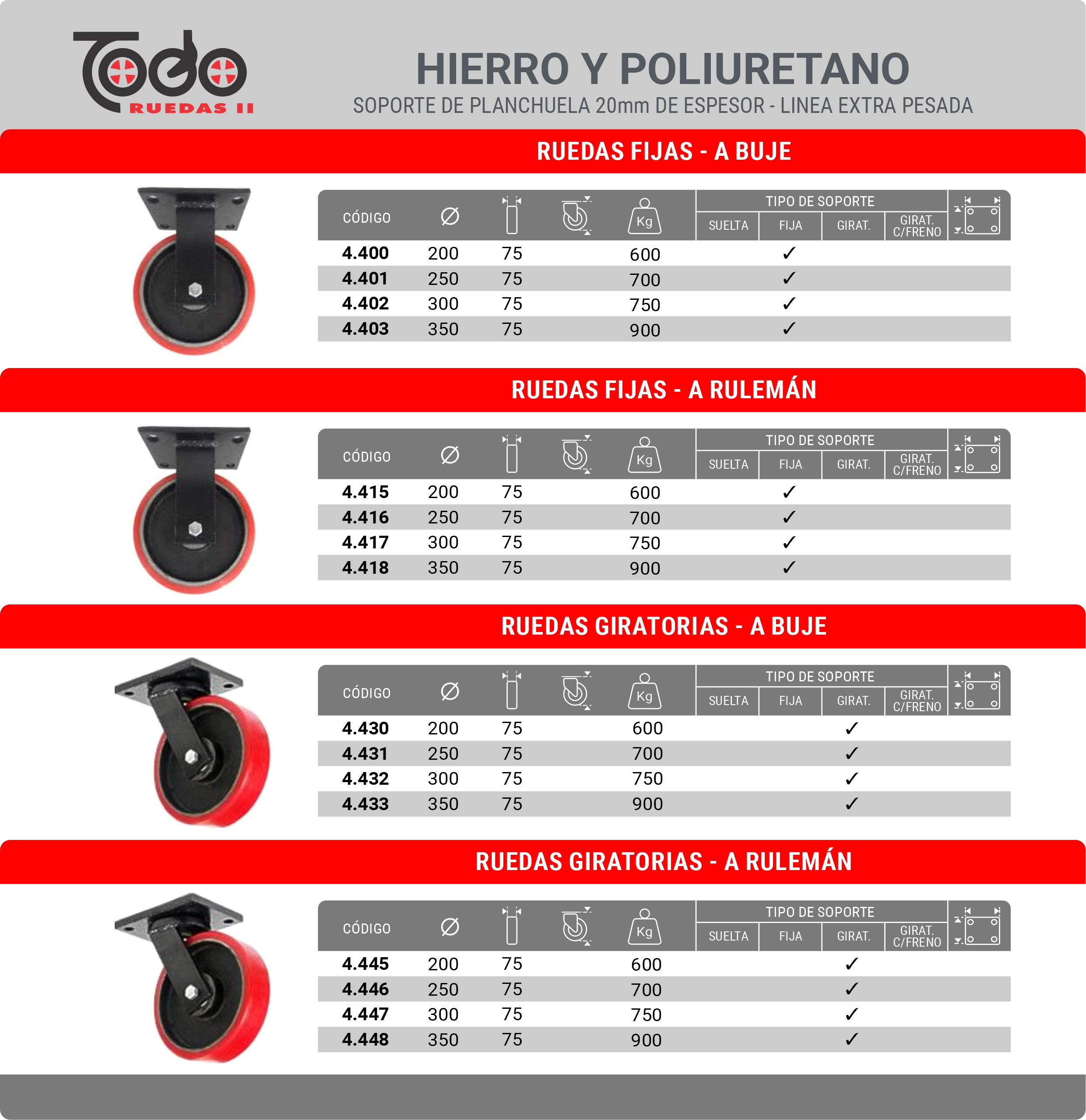 / Ruedas de Hierro y Poliuretano A buje o Ruleman – Linea Extra Pesada 20mm