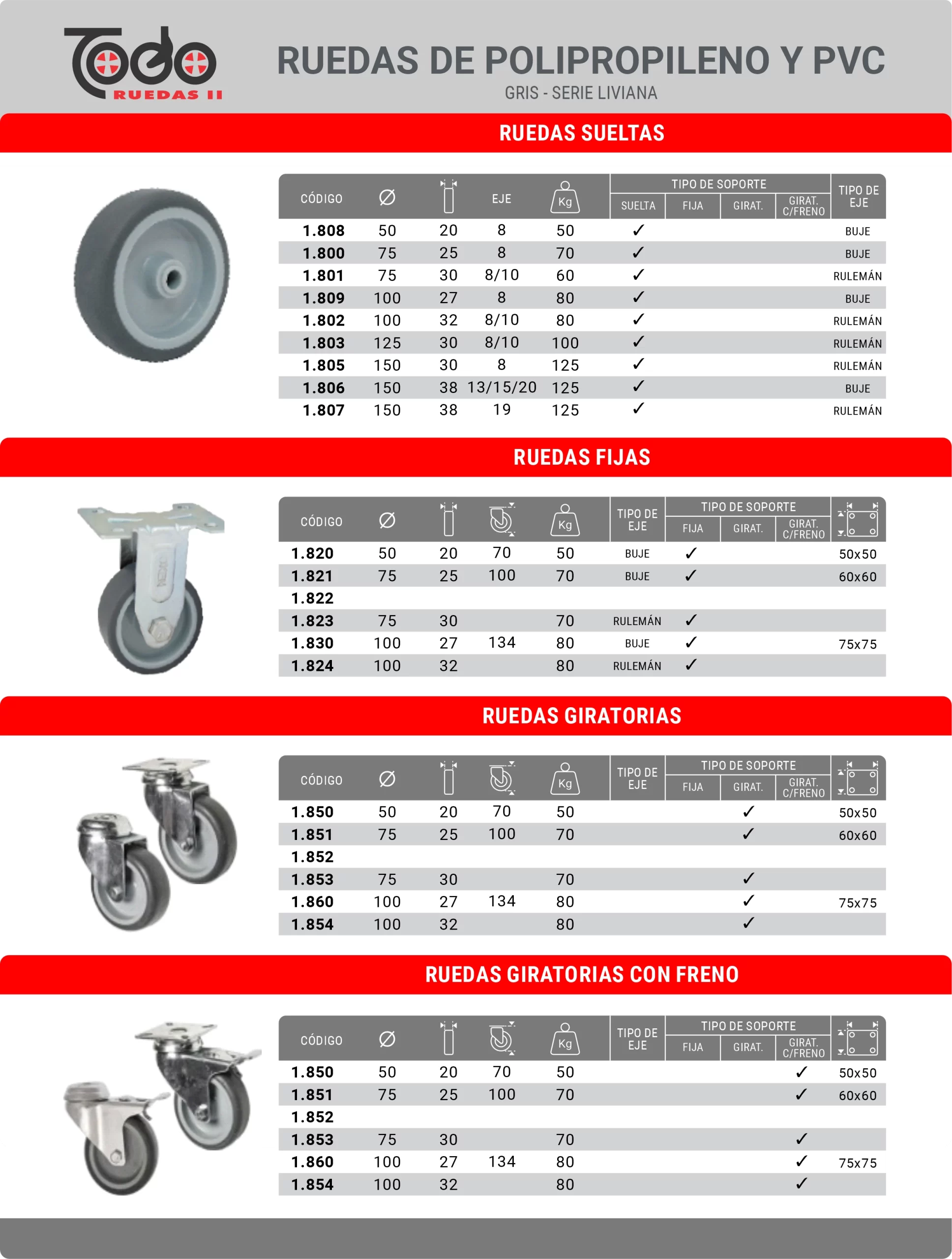 / Ruedas Polipropileno y PVC – Gris – Serie Liviana