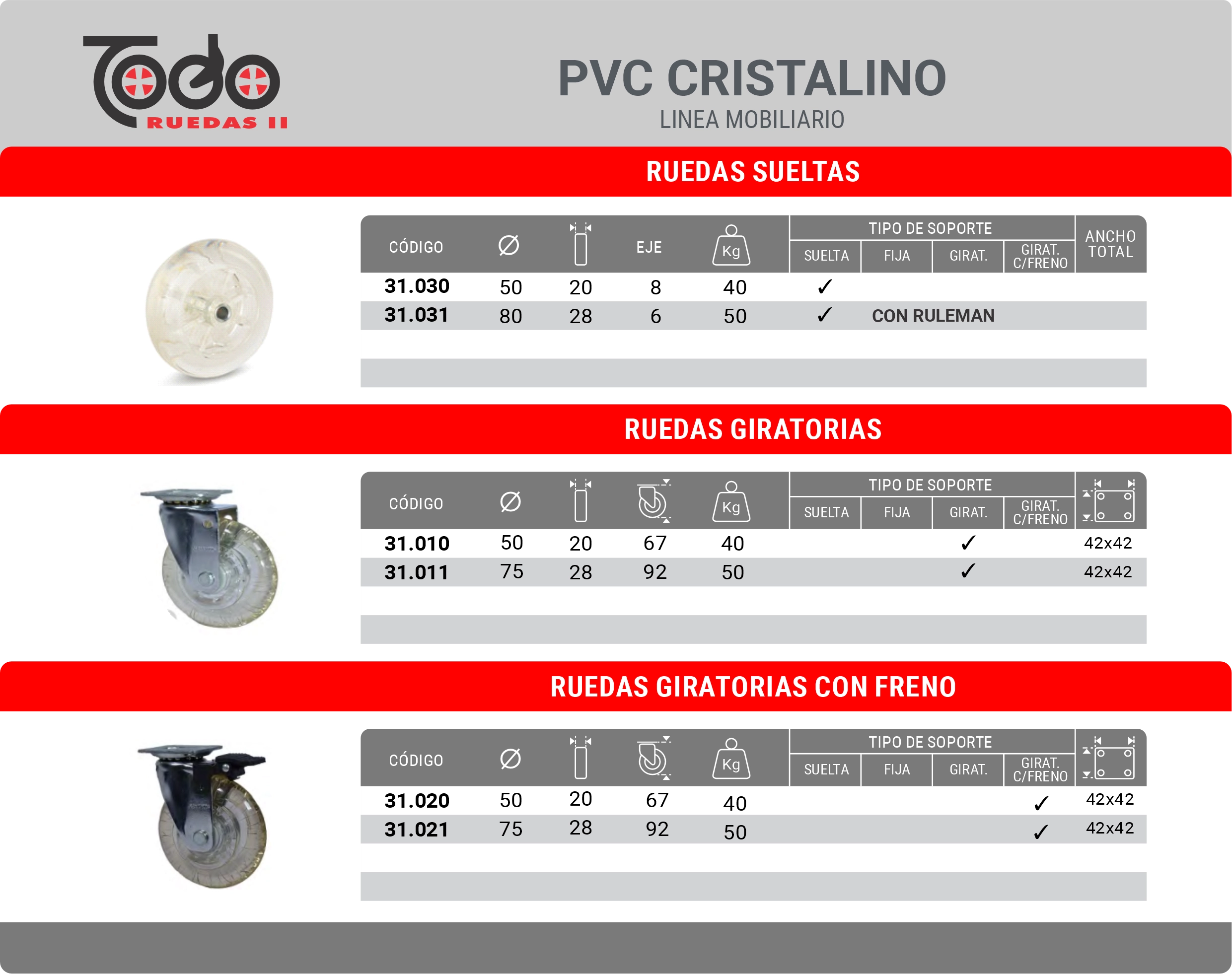 / Ruedas PVC Cristalino – Linea Mobiliario