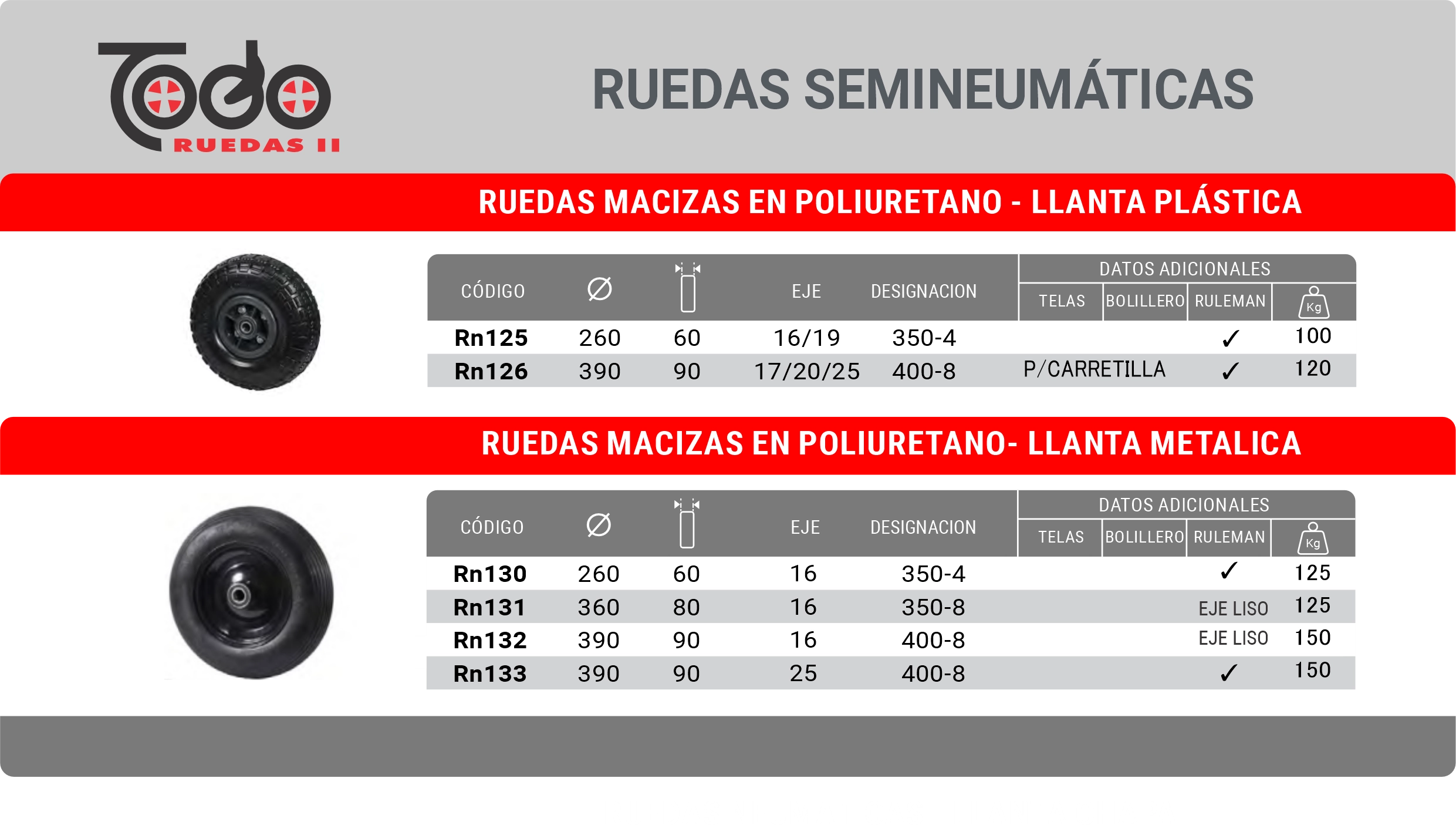 Ruedas Poliuretano y Polipropileno Con Ruleman